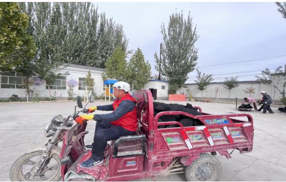 在暖心煤发放现场,阿热勒镇副镇长、尤喀克麦盖提村党支部书记艾力亚斯·依麦尔和村第一书记刘文同志积极组织村“两委”、工作队及各网格长做好“暖心煤”称重、装车、签字确认,现场安全保障等工作。群众们开着自家的小三轮等前来领取,发放过程井然有序、有条不紊,工作人员认真核对,准确发放,以确保将暖心煤发放到真正困难的群众手中。对于家中没有交通工具的,村里的党员干部纷纷用自己的三轮车为他们送到家里。
