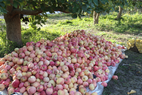 六连职工张保华说道:“今年我们种植了40亩苹果,苹果收成还可以,预计可以收获60吨苹果。现在我们正在卸苹果,每天招收13个临工,预计再有半个月就可以卸完苹果。