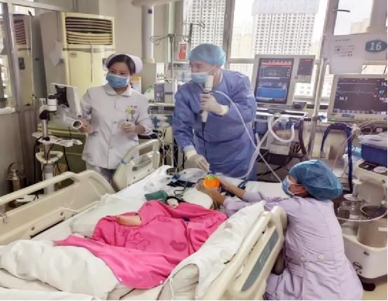 萱萱(化名)今年9岁,因反复高热、咳嗽被诊断为肺炎、肺不张入住第一师医院儿科。入院后管床医生发现她左肺不张,病情严重,遂请儿科主任陈彩玲和在该科开展援疆工作的刘李军副主任查看患儿病情,并制定详实的治疗方案。