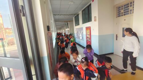 11月8日17点50分,清脆的消防警报拉响,学校安全工作应急预案随即启动,各岗位值班人员迅速到位,各负责老师带领学生弯腰捂住口鼻立刻有序地从教室撤离到操场上。各班级清点好学生人数,并及时向安全员王立凯上报全校师生共1790人全部安全地撤离到安全区域,用时2分18秒,整个过程有序安全撤离、无拥挤、碰撞和踩踏事故发生。