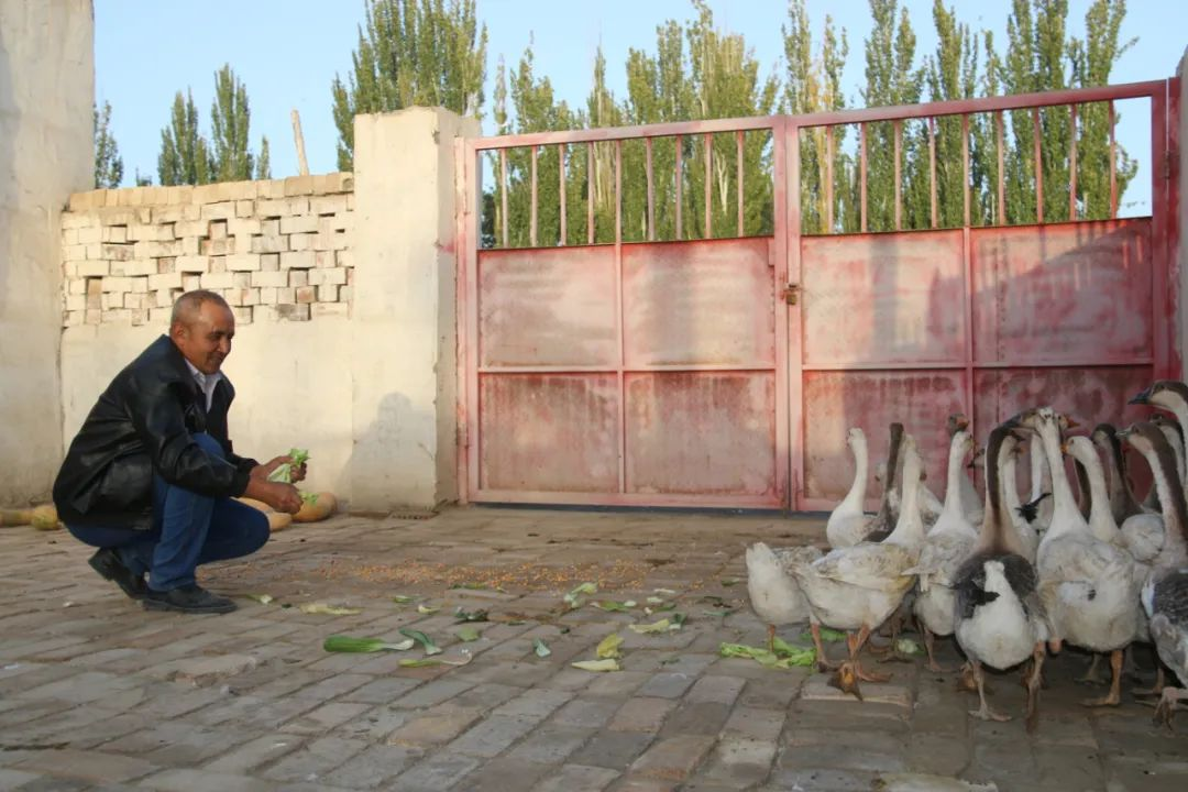“家里的庭院有块空地,就在村委会和工作队的引导下免费领了35只鹅苗,养了两个月了,现在差不多平均都有四五公斤重了,到了年底卖了可以收入2000元,村里的科技员会来给我们培训养鹅技术,我白天把鹅赶到玉米田里,既能除草,还能松动田泥。鹅粪是很好的有机肥,既能减少化肥,又能提高地力。”新疆库车市齐满镇渭干村村民巴拉提·买米提力高兴地向记者细说着养鹅的好处。”