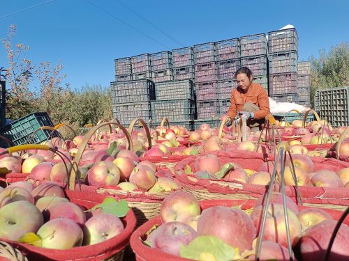 时下,阿克苏的冰糖心苹果进入成熟采收期,走进田间地头,红彤彤的苹果挂满了枝头,果农们正忙着采摘苹果,到处一派丰收的景象。个别果农因采摘人手不足,面临采摘不及时的难题。为抢抓农时,连日来,阿克苏市水利局驻阿克苏商贸物流产业园(红旗坡片区)管委会萨合提社区工作队,积极联系市水利局(派出单位)的部分党员与社区“两委”及党团员组成“助农采摘”志愿者服务小分队,到辖区果园开展“我为群众办实事”助农采摘志愿服务实践活动,帮助缺少劳动力的果农和种植大户采摘、分拣、包装苹果,并通过多种销售渠道联系商家销售,为群众解决在采摘和销售中遇到的各种难题,以实际行动助农增收。