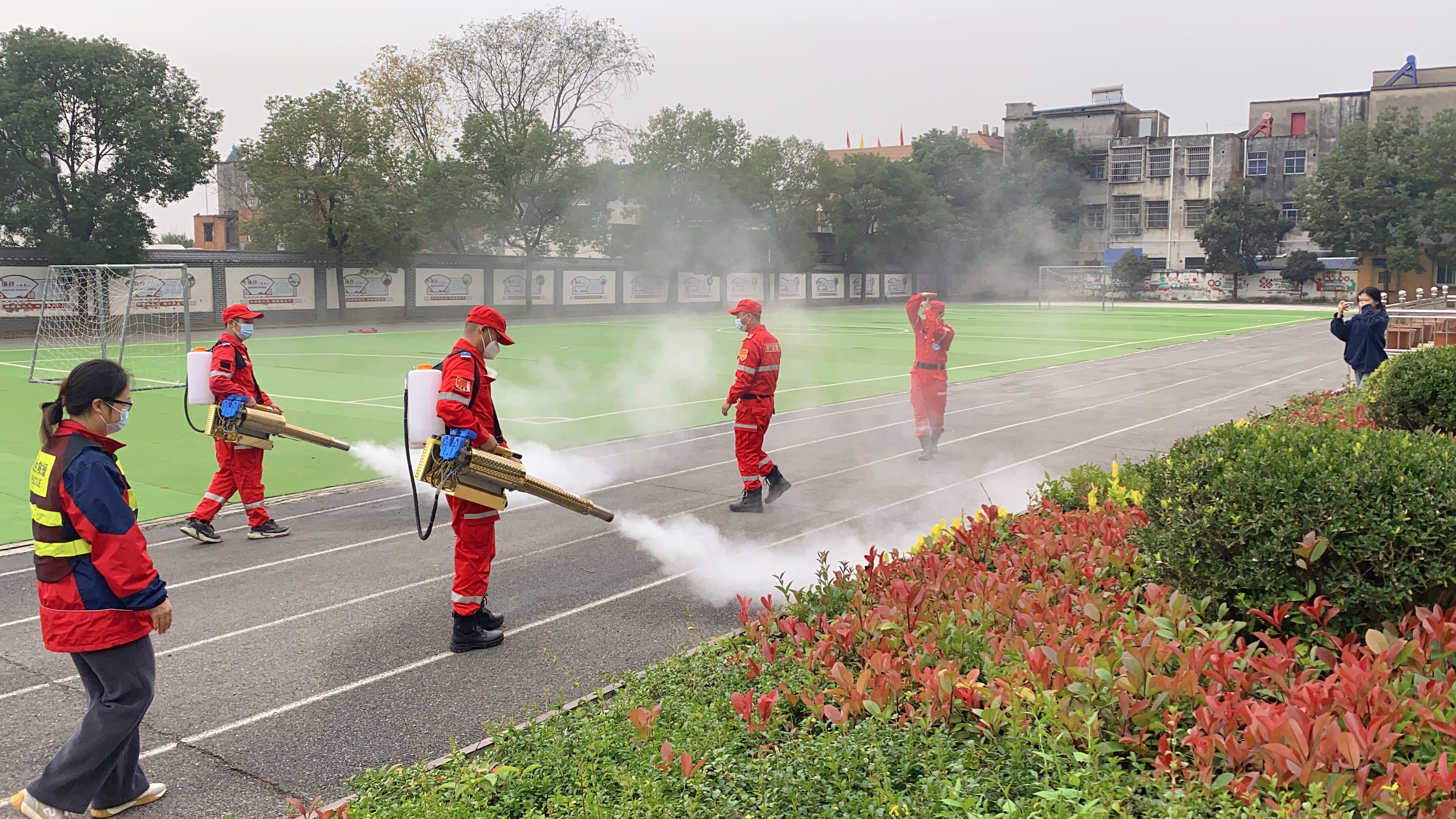 上午8点,民生应急救援队来到学校,对校园进行免费全面消杀。工作人员认真细致地对教学楼、食堂、宿舍和厕所等地方做到全覆盖,无死角消杀,并对重点区域重点消杀。他们用实际行动为学生营造了安全的学习环境,用奉献精神织密了校园安全防线,为全体师生的健康撑起了一把安全牢固的“保护伞”。(枣阳市环城丁庄小学:杨红、杨建勤)