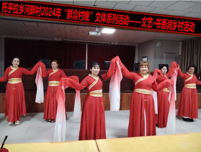 舞蹈《阿克苏的苹果红了》拉开了河畔村“群众村晚”活动帷幕。随着欢快的音乐响起,河畔村群众演员身着汉服,翩翩起舞。“大手拉小手·亲子诵经典”古诗词朗诵、大合唱《歌唱祖国》、快板《河畔赋》、小品《你不是我的儿媳,而是我的女儿》,集体舞《中华民族一家亲》等节目一一上演,精彩纷呈,展现出热爱祖国、热爱家乡、热爱美好生活的精神面貌。