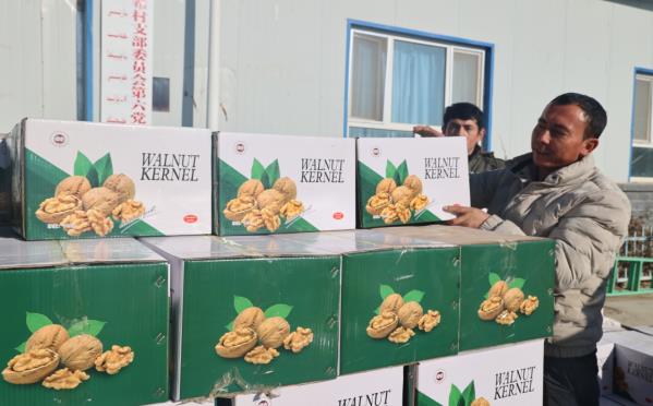 12月7日,走进乌什县依麻木镇园丁林果种植专业合作社核桃加工生产车间看到,工人们正在对一颗颗圆润饱满的核桃进行等级筛选、包装,捡拾、装运,直播,一派繁忙景象。