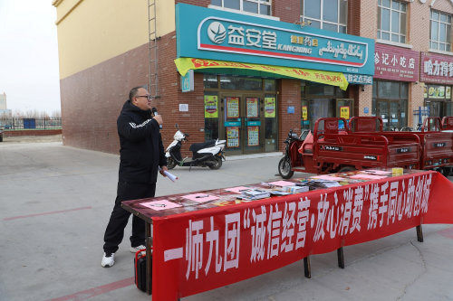 为持续推进全国文明城市创建工作,12月8日下午,新疆生产建设兵团第一师阿拉尔市九团开展“诚信经营·放心消费”携手同心助创城活动,机关事业单位、如意社区100名志愿者以及九团美盛商业街、万旺商贸街商铺代表共同参与。