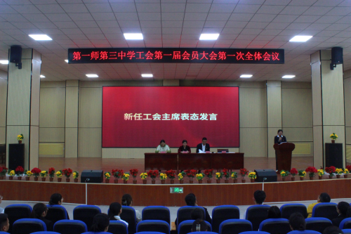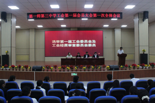 12月13日下午,第一师第三中学工会会员大会第一届一次会议隆重召开。大会由学校校长尹豫江主持,青松路街道办事处党工委副书记、总工会主席曾莉,青松路街道办事处工作人员刘振南以及全校29名会员出席此次会议。