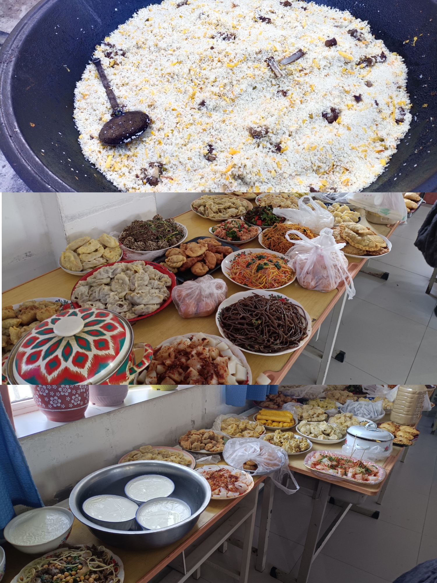 精彩纷呈的文艺演出之后,就到了美食品鉴活动。这一环节不仅满足了村民的味蕾,还为他们提供了一个交流和分享的平台。活动一开始,村民们纷纷拿出自己精心准备的家常菜,与大家分享。这些美食既有新疆特色的烤全羊、手抓饭、羊肉串,也有家常的饺子、包子、酸奶、大盘鸡。每一样都散发着诱人的香气,让人垂涎欲滴。除了食物的香气,现场还弥漫着欢声笑语。村民们围坐在一起,品尝着美食,分享着家常,彼此之间的距离也在这温馨的氛围中拉近了。有的家长还带着孩子来参加,让孩子感受家乡的温暖和传统。这次美食品鉴活动不仅是一次味觉的盛宴,更是一次文化的交流。
