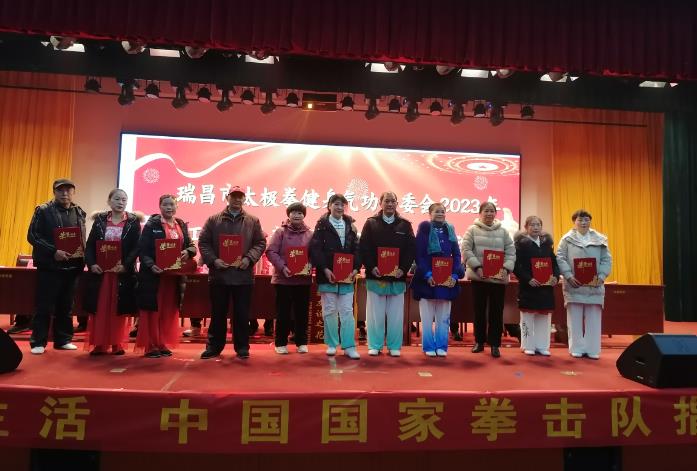 本次会议由太极拳专委会主席陈伦堂作2023年太极拳健身气功工作报告,太极拳专委会副主席刘俊宣读2023年太极健身气功42个先进集体和55个先进个人名单,并举行了颁奖仪式。市老体协主席丁显松向支持太极拳活动的瑞昌全民优生活羊乳企业市场部经理何创新先生赠送锦旗,市老体协常务副主席姚秦珍讲话并宣布展演文体节目开始。