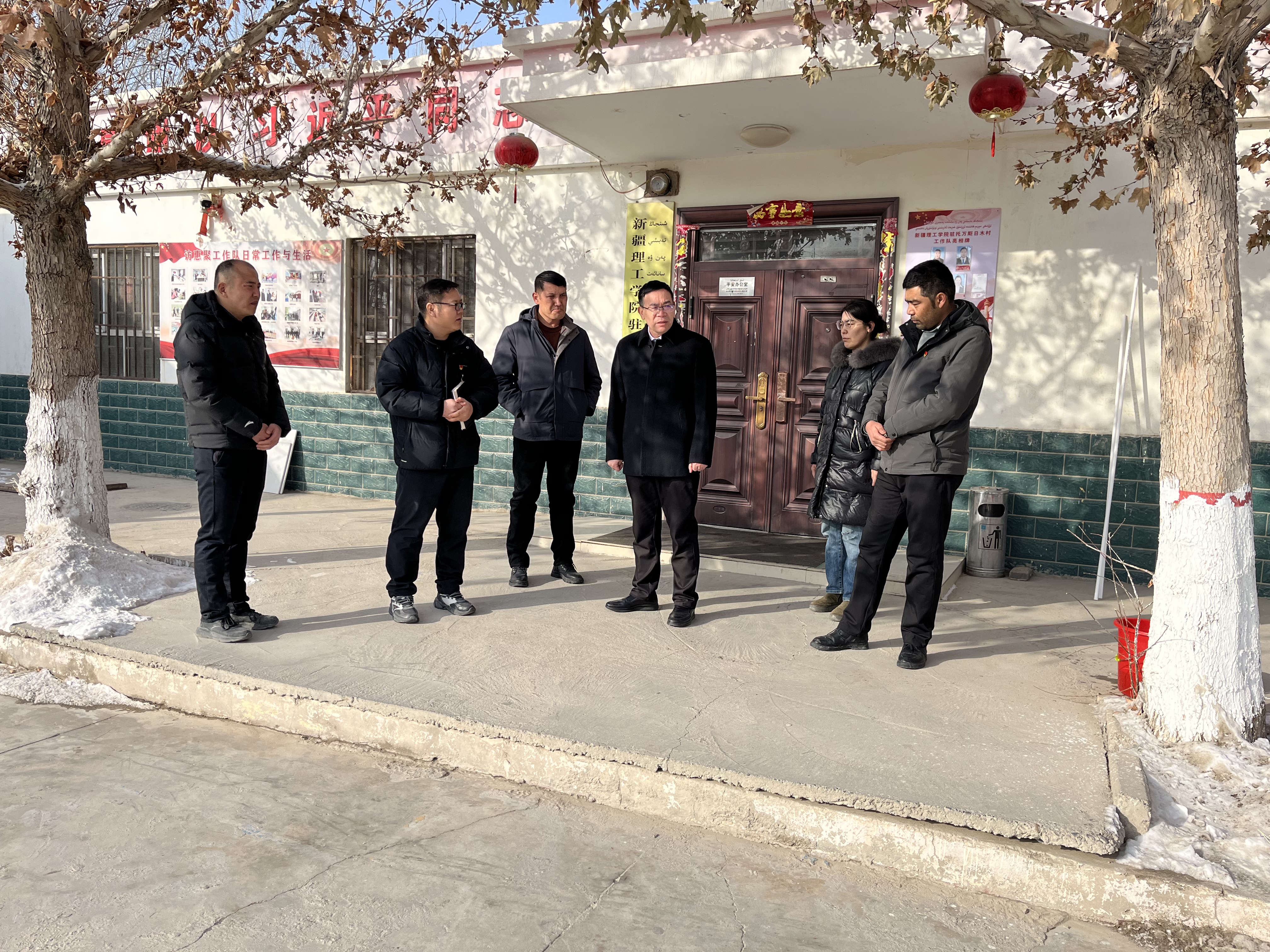 会上,大家共同对托万斯日木村当前开展的各项工作及时进行梳理、总结。吐木秀克镇主要领导提出几点意见建议,希望工作队在推进乡村振兴方面持续用力,加强村干部“传帮带”,在选强人、育新人,帮带提升干部能力素质方面多下功夫。粟智校长代表新疆理工学院党委表示,将严格按照“队员当代表、单位做后盾、一把手负总责”的工作要求,坚决扛起做好驻村工作的政治责任,切实发挥好协调、指导、督促、帮助作用,坚决贯彻落实地委、县委决策部署和驻村工作各项任务,要进一步发挥好院校智力、人才、科研等优势,结合院系特色,加强与驻村点的联系,在农业生产、产业培育上下更大功夫,扶持壮大村集体经济,带动村民在家门口就业,在产业上增收。同时,工作队员要深化第二批主题教育成果,深入走访调研,掌握社情民意,解决好群众急难愁盼问题,尤其是春节前后,要守好安全底线,加强安全隐患排查化解,做好水电煤气等安全工作,确保村民度过安全祥和的春节。