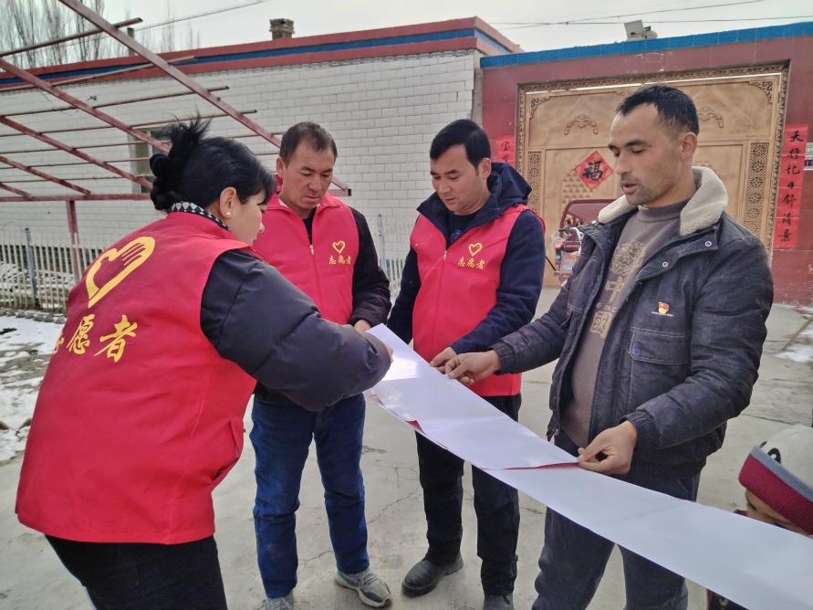 (温宿县托乎拉乡河畔村开展“贴春联、送祝福”活动)