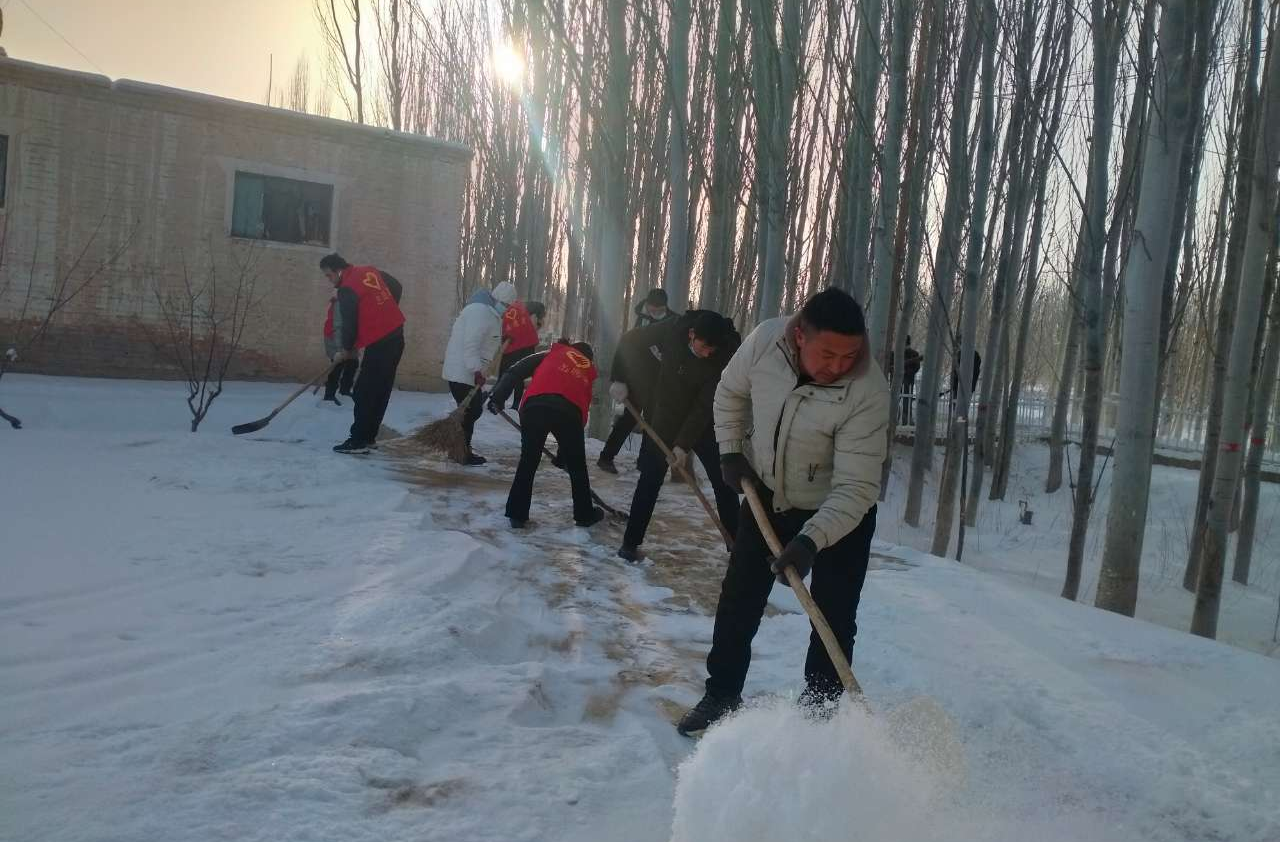 在前两天的连续降雪中,整个村庄被厚厚的雪覆盖,给车辆和行人都带来了不小的困扰,尤其是对于老年人来说,雪天出行无疑增加了许多安全隐患。为了确保村里的独居老人能够安全、舒适地度过这个冬天,不受雪天的影响,托万斯日木村党支部迅速组织起了一支由党员志愿者组成的特别服务队。3日的清晨,这支志愿者队伍就纷纷行动起来,他们穿上厚实的冬衣,拿起铁锹和扫帚,走进了村子里每一位独居老人的院子,开始了铲雪和清扫工作。尽管寒风刺骨,但志愿者的热情却丝毫未减。他们铲的铲、扫的扫,伴随着扫雪声和欢声笑语,使得原本单调的劳作变得生动有趣。