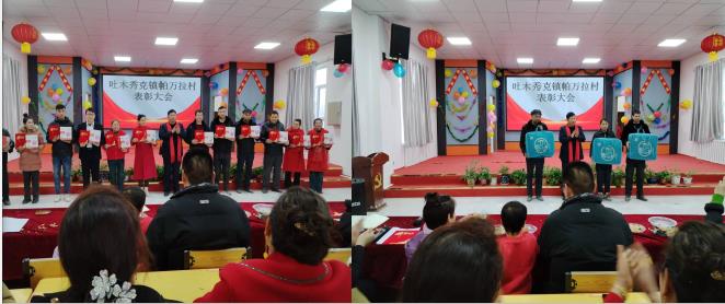 迎“春节”民族团结一家亲节目在充满美好祝福的舞蹈《中华全家福》接近尾声;最后,在大家齐跳麦西莱普后迎“新春”晚会圆满落幕。表演结束后,帕万拉村为会对年度村表现优秀的党员、村民及村委会优秀工作人员进行了表彰奖励,激励大家在新的一年里继续努力,共建共创、同为村的发展作出贡献。