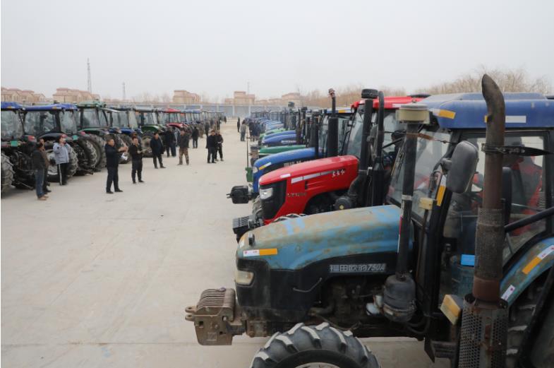 2月28日,在二团农机站内,1130余台各式农用拖拉机整齐排开接受审验,筑牢农机安全作业防线,以良好的待机作业状态投入春播。