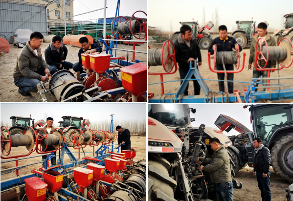 2024年3月1日,技术人员在新疆阿克苏地区阿瓦提县鑫汇诚农机服务农民专业合作社联合社检修棉花播种机。据了解,阿瓦提县农业农村局农机技术人员深入辖区各大农机合作社加大棉花播种机检修和调试工作,确保今年棉花播种顺利进行。(阿瓦提县委组织部:包良廷)