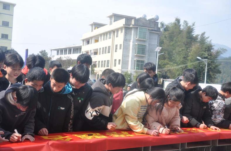 最后,在一曲《我要飞得更高》的动人旋律声中,全体师生在励志标语“争分夺秒、奋战百日、全力以赴、金榜题名”横幅上庄重地签名立誓,表明自己冲刺中考、决胜中考的铮铮誓言。(通讯员: 陈远志 /陈正 /刘啸)