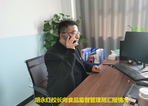学校党支部书记刘智瑜上报教育局主管部门汇报事故的经过以及事故程度。校长胡永红向所在区域的市场监督管理局报告情况,在事故处理过程中根据实际情况建立定时报告制度。