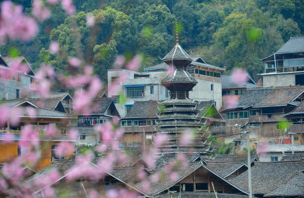 阳春三月,春光明媚,贵州省黔东南苗族侗族自治州从江县丙梅街道銮里侗寨春花绽放,姹紫嫣红,到处呈现出一派春意盎然的景色,侗家吊脚楼、鼓楼和乡村田野掩映其间,色彩缤纷,美如画卷。(从江县教育和科技局:卢忠南)