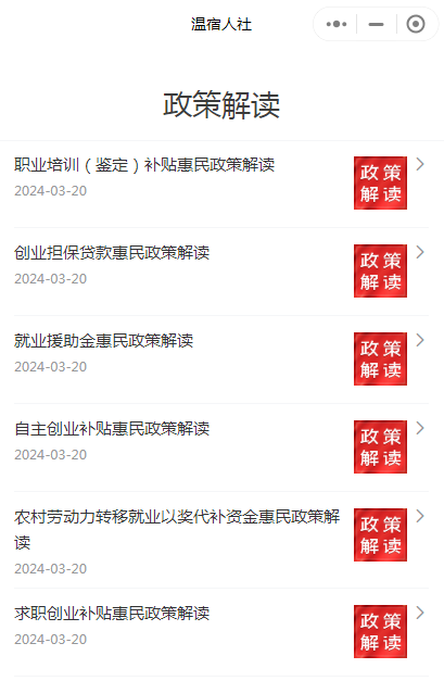 图为:“温宿人社”小程序政策解读模块,群众可通过扫码了解最新就业、社保等惠民政策(江凯摄)