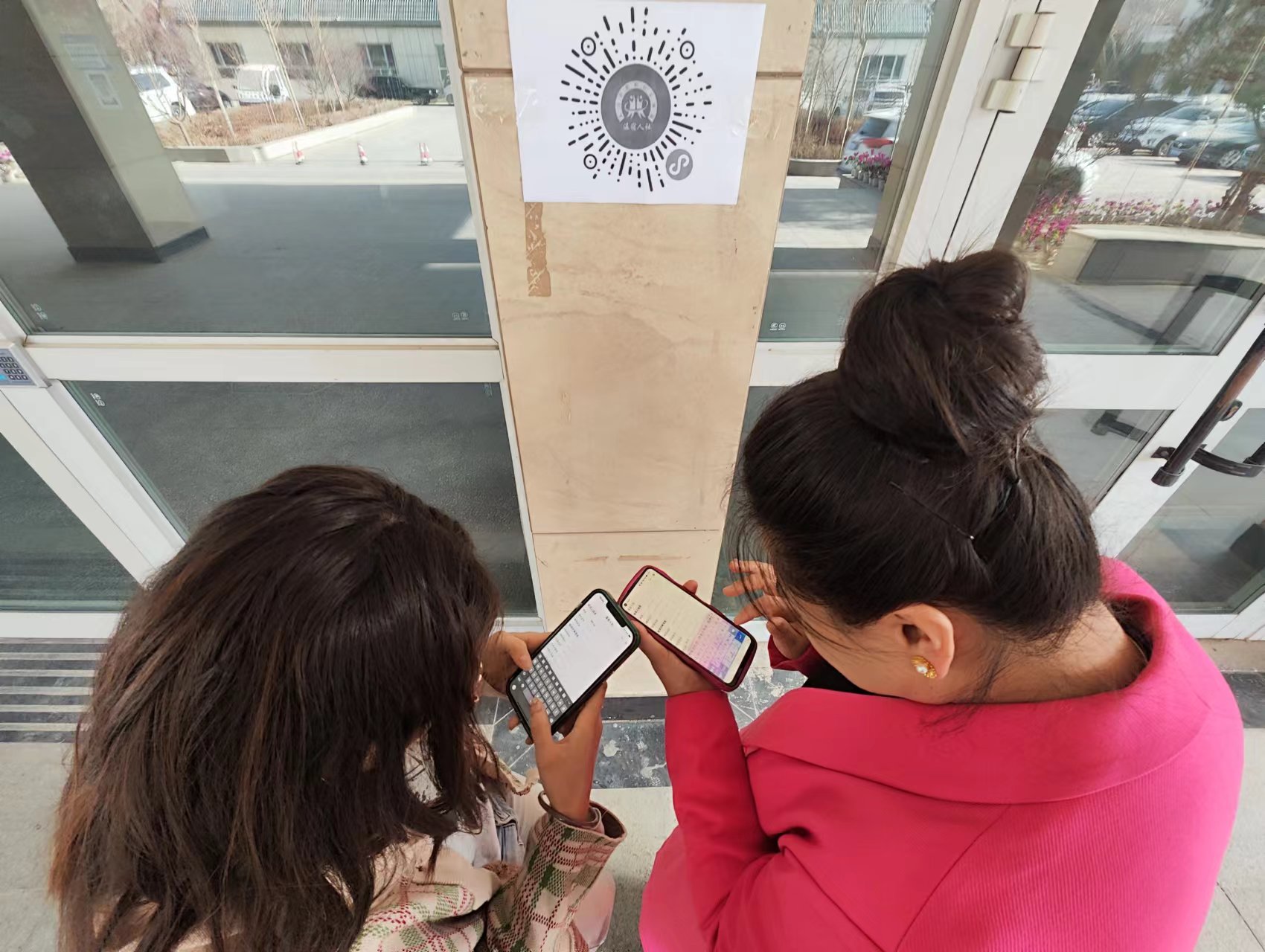 图为:新疆阿克苏地区温宿县人社局开发的“温宿人社”微信小程序,群众扫码可获得相关信息(江凯摄)