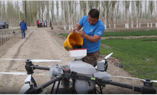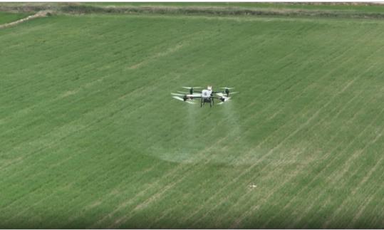 科技的应用减少了人力成本、降低了农业生产的门槛和难度,为职工增收致富开辟了新路径。在七团十三连小麦地里,技术人员正向职工介绍如何调配农药,并把勾兑好的农药倒入无人机药箱。伴随着一阵阵螺旋桨的嗡鸣声,无人机在技术人员的操控下,沿着麦地匀速飞行,雾状的农药随着气流均匀地散落在田间地头。