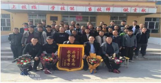 图为:近日,在温宿县技工学校建筑实训基地,参加钢筋工培训结业学员为学校送上锦旗以示谢意(江凯摄)
