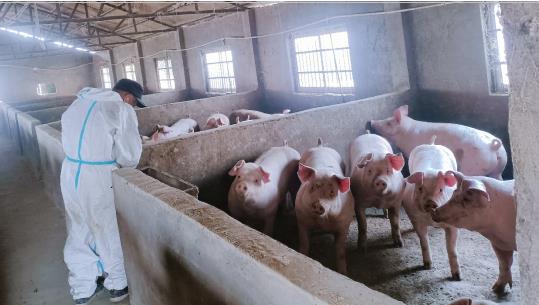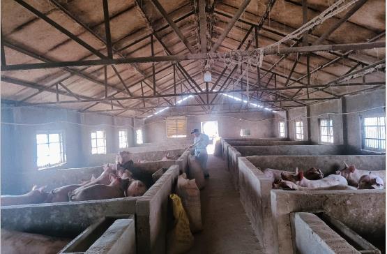 “今年的肉猪市场行情还行,利润比较可观。平常在家也是闲着,出去打工没法干,离家也近,干活也方便,给的工资也可以。”在猪圈干活的“监测户”张献法说道,他一边吆喝着猪圈里的猪,一边将手里的猪食往猪槽里倾倒,十分忙碌。