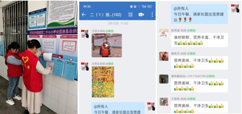 建立家长委员会代表参与食堂全程管理的监督机制,有序组织家长代表参与食谱、卫生、验收、分餐、陪餐、消毒等涉及食品安全与营养健康的管理和监督。学校每天邀请两名不同的家长志愿者走进学校,把当天伙食录制成小视频推送到每个班级家长群,全面接受全体家长及社会的监督。通过明厨亮灶全方位、无死角地对食堂的每一道工序、每一个环节进行全程监控。