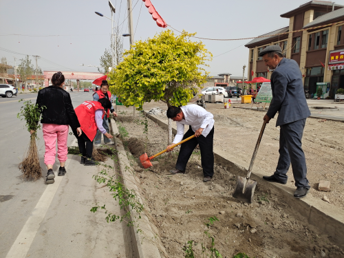一年之计在于春,植树添绿正当时。为深入贯彻落实党的二十大精神,践行“绿水青山就是金山银山”生态理念,大力弘扬“奉献、友爱、互助、进步”的志愿服务精神。4月下旬,英艾日克镇玉斯屯克帕万拉村新时代文明实践站组织全体党员、村“两委”、驻村工作队干部及村新时代文明实践站志愿者服务队的志愿者开展了“党建引领添新绿 乡村振兴增活力”义务植树志愿服务活动。