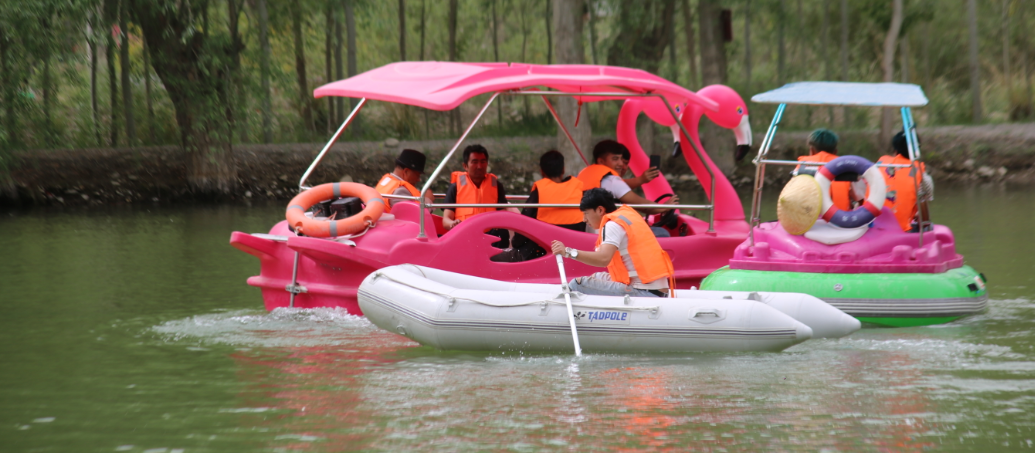 5月13日,在新疆乌什县奥特贝希乡色日克阿热勒村玛尔将湖农家乐,游客们体验划船休闲时光。近年来,该县积极打造生态游和休闲游,促进乡村旅游产业不断发展。(中共乌什县委宣传部外宣办:外力·克依木 )