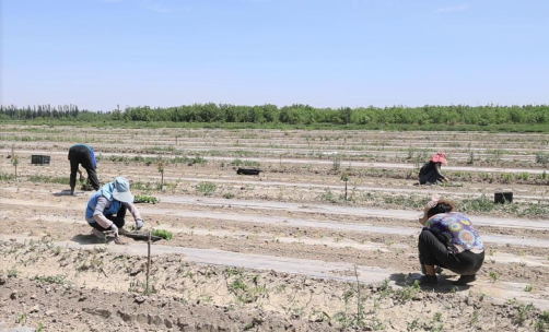 眼下,正是移栽辣椒的关键时期,在新疆库车市玉奇吾斯塘乡的库车玉奇登丰林果农民专业合作社联合社辣椒种植地上,四十几名村民抢抓时机,忙着辣椒苗移栽,一排排新植的鲜绿,在阳光下绿意摇曳,绘制出一幅栩栩如生的夏忙画卷。
