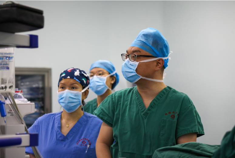 在麻醉科、手术室的全力护航下,由杨树旭主任主刀,李新伟主任和程淼主治医师辅助,该项手术顺利完成。
