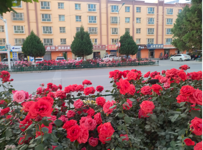 近段时间,和朋友去了地处天山山脉最高峰托木尔峰脚下的新疆生产建设兵团第一师四团永宁镇,看到永安路两旁的各色月季竞相绽放,美景怡人。