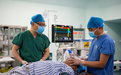 4月19日手术如约进行,麻醉科特聘主任鲁凯带领麻醉团队为谢爷爷手术麻醉全过程保驾护航。