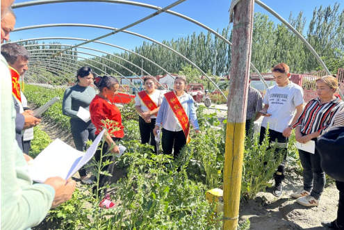 近日,米吉克乡科技人员深入蔬菜大拱棚基地,现场培训的方式给农户讲解蔬菜田间管理技术。