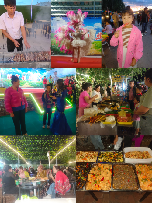 餐饮区摆满了整齐排列的摊位,在夜市大舞台上,歌舞飞扬,独唱《跳起来》、独舞《扇子舞》《印度舞》《人蛇共舞》等精彩节目轮番上演,赢得了现场观众的阵阵掌声。美味的佳肴、热闹的氛围点亮了曲达村的夜晚,拉动了曲达村的夜间经济,在为居民带来了休闲娱乐的同时,为村民收入增加了新动能。
