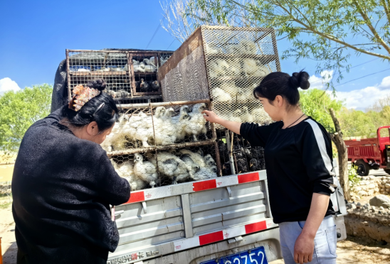 清晨的山风还带着丝丝寒意,在提坎库如克村鸡苗发放点显得异常热闹,工作队正在迎接四面八方将要领取鸡苗的群众。