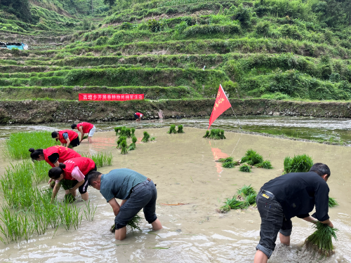 高增乡:5月29日,高增乡团委联合乡退役军人服务站,组织志愿服务队、青年志愿者等10余人到银良村退役军人田间开展“‘团’聚青年·助农拥军”插秧志愿服务活动,保障困难群众水稻及时栽插,助力粮食生产,用实际行动为民办实事、办好事,解决燃眉之急,是新时代雷锋精神在乡村振兴时代背景下的生动实践。