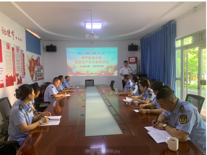 为切实做好消防安全工作,增强干部职工的消防安全意识,6月6日,伊宁执法大队邀请伊犁政安防火知识宣传中心教官组织开展了消防安全知识专题讲座和消防应急演练。
