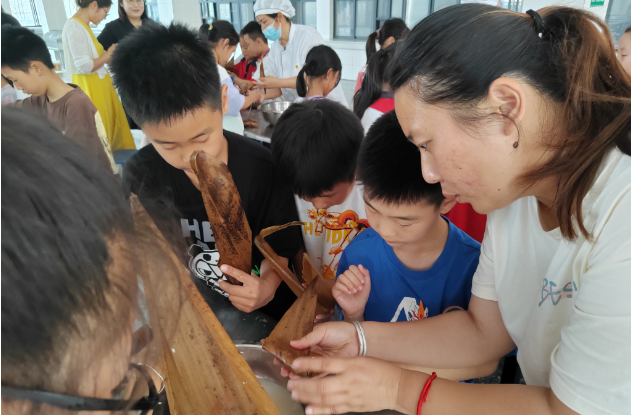 经过一番努力,孩子们成功包出了形状各异的粽子。看着自己的劳动成果,孩子们的脸上洋溢着喜悦的笑容。他们纷纷表示,这次活动不仅让他们学会了包粽子的技巧,更让他们深刻感受到了传统文化的魅力和价值。这次活动不仅让师生亲身体验了传统文化的独特魅力,也是双减政策中的提质增效落到实处的表现。(通讯员:刘玉、 柯贤兵)