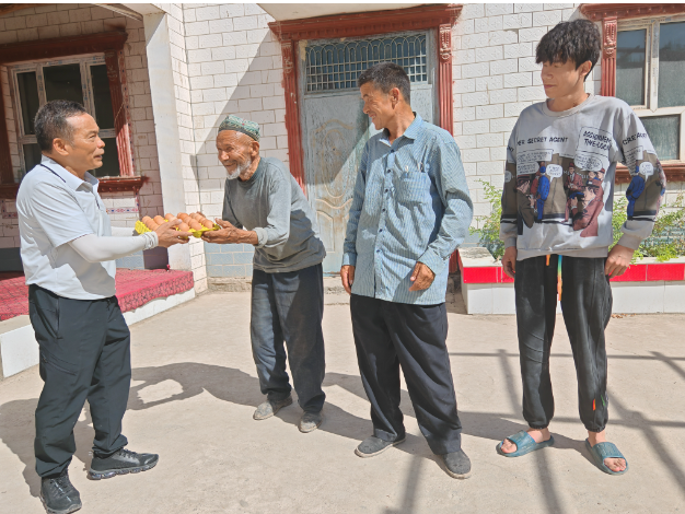 为促进民族团结和文化交流,进一步铸牢中华民族共同体意识,6月14日,在古尔邦节来临之际,阿克苏市水利局的干部在喀拉塔勒镇萨提村开展古尔邦节走访慰问活动。