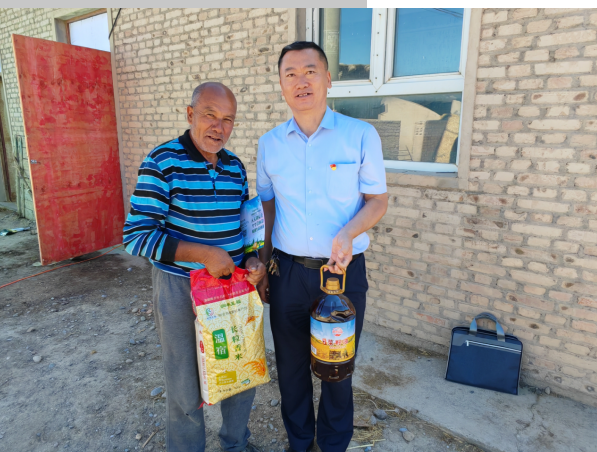 古尔邦节来临之际,为进一步做好节前走访慰问困难群众工作。6月15日,后盾单位阿克苏塔里木农商银行入户走访辖区困难群众54户,为他们送去米、面、油以及诚挚的节日祝福。