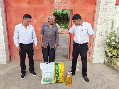 节日当天,村民积极参加升国旗活动,唱国歌、行注目礼,村支部书记买尔旦·买买提宣讲了铸牢中华民族共同体意识,民族团结一家亲。活动结束后,慰问组开展到户慰问,每到一户,与村民进行了亲切的交谈,详细了解村民身体状况及生活生产情况。为我村困难群众、孤寡老人家庭送来了一袋大米、一桶清油、一袋面粉等物资,同时也送上节日的祝福和诚挚的问候,使他们深切感受到了党组织的温暖和关怀,有效地拉近了党员领导干部与各族群众之间的距离,进一步增进了群众感情,做到了以实际行动促民族团结。(通讯员:高 波 )