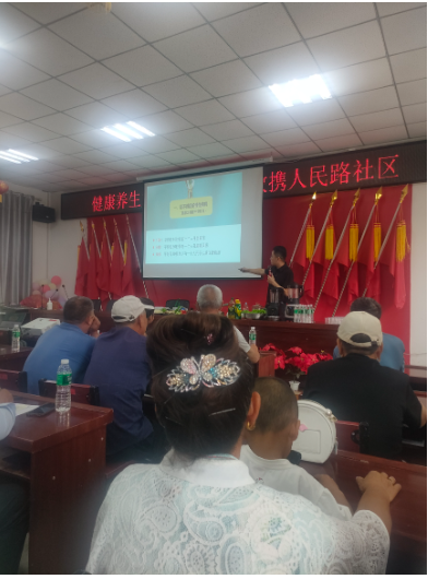 6月22日,在第一师四团人民路社区,来自各小区40余位老年人,欢聚一堂,听北京来的营养师陈治琨,健康养生讲座。