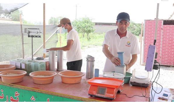 为给农户一个舒心的售粮氛围,粮站根据车辆大小,开辟两条流水作业线,加快收粮速度,将整个收粮环节严格控制在三个小时之内完成,针对夏季高温天气,各粮食收购点还设置了休息区,准备了茶水、西瓜、馕等物品,供售粮农民休息等候。
