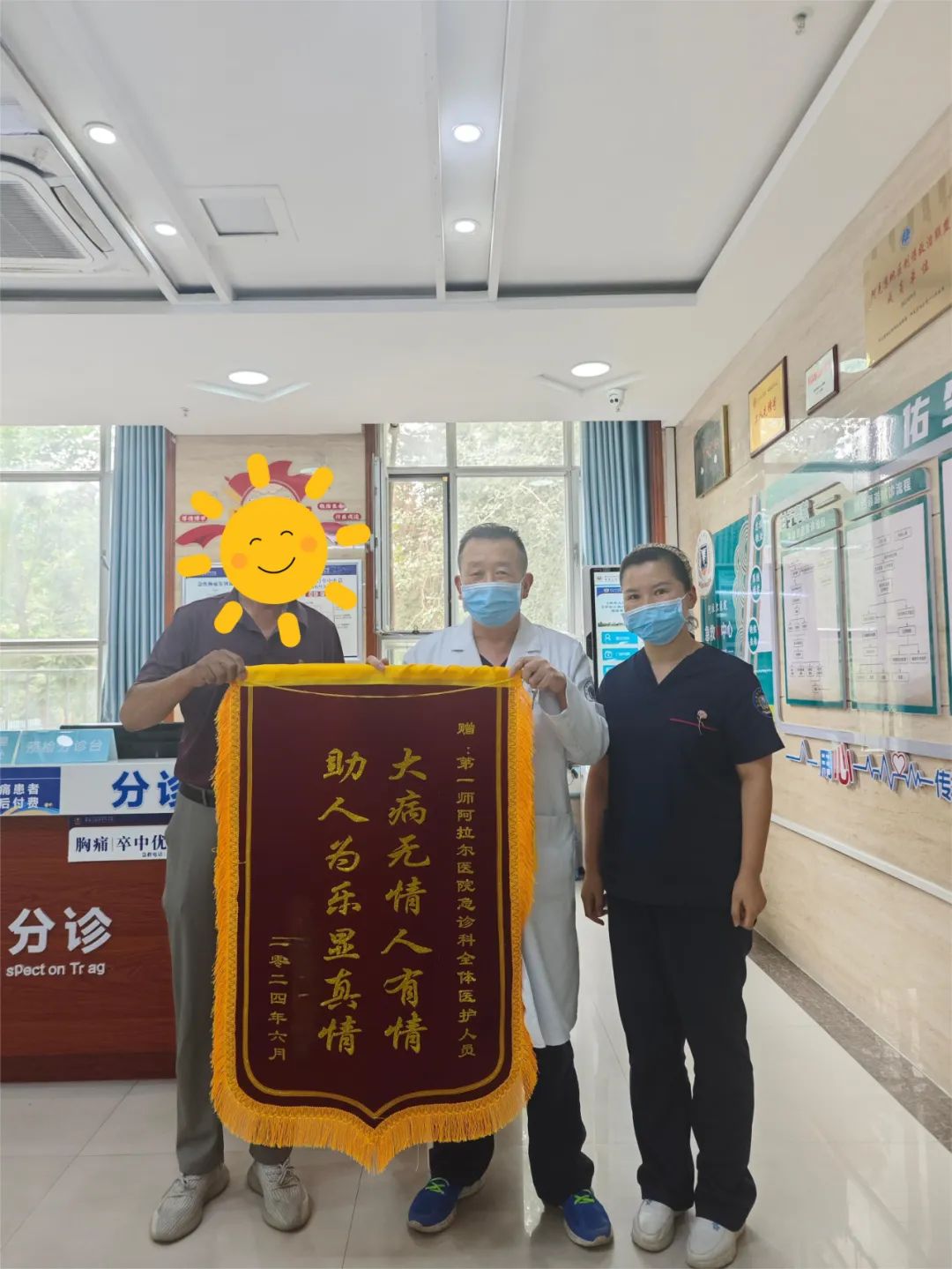 作为医院的重要窗口和前沿阵地,急诊科始终坚守在医疗救治的第一线,他们用无数个日夜的辛勤付出和无私奉献,为患者的健康保驾护航,他们用专业素养和人文精神赢得了患者和家属的广泛赞誉和尊重。急诊科特聘护士长李贞说:“这2面锦旗所代表的不仅是患者对我们急诊科医护人员的感激之情,更是对我们服务的肯定和褒奖。我们深知,在医疗领域,每一个细节都关乎患者的身体健康和生命安全。因此,我们始终坚持‘给您真诚、信心和爱’的服务理念,为患者提供最有温度的医疗服务。”(浙大邵逸夫阿拉尔医院:王勇)