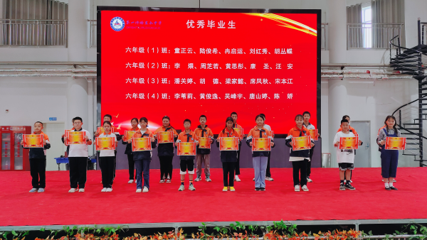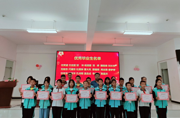 典礼上,2024届毕业生学生代表还精心准备了舞蹈、歌曲、朗诵等文艺节目,以此来表达对母校的培养之情,感谢父母的养育之恩以及老师们的谆谆教导。此外,学校校领导还为八年级授予校旗,鼓励八年级全体师生再接再厉,再创佳绩,还对2024届六年级、九年级优秀毕业生进行了表扬,并为每位优秀毕业生颁发了荣誉证书。