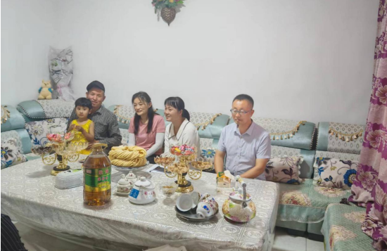 县委史志办干部、驻村工作队和村干部通过与阿依谢姆·艾麦提一家拉家常,询问他们的身体状况、生产生活情况和家人就医就业就学情况,通过交流互动,结合身边的发展变化,向他们宣讲党的二十大精神、党的历史和党的惠民政策。