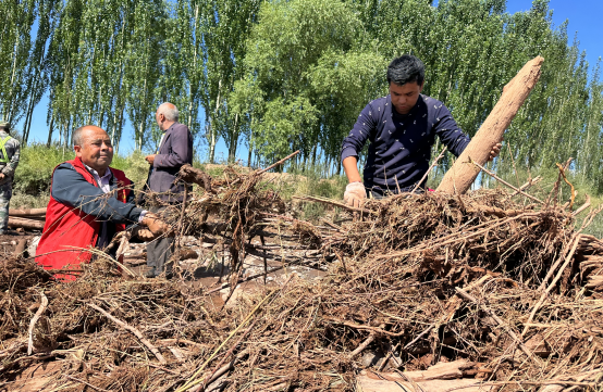受近期持续强降雨影响,防汛抗洪进入关键时期。7月9日,温宿县文旅集团驻阿克布拉克村工作队和村两委组织应急求援队伍100余人对辖区防洪堤坝进行整修加固,20余名干部和群众也前来忙着搬运石块、木桩,累计搬运各类抗洪物资达20吨。通过大家的共同努力,完成防洪堤坝300余米的除险加固,有效消除坝体溃塌的风险,同时组织小分队不间断巡逻、监测和预警水情,切实做到有备无患,以实际行动坚决保障平安渡汛,确保周边群众生命和财产安全。(温宿县文旅集团驻博孜墩乡阿克布拉克村工作队:兰晓明、开比力古丽)