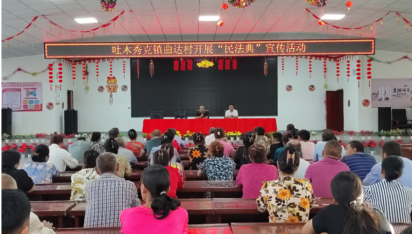 为全面贯彻落实党的二十大精神,深入学习宣传贯彻习近平法治思想,进一步增强群众对《民法典》的认知与理解, 增强群众的法治观念和法律意识,深入普及《民法典》知识,7月20日,温宿县吐木秀克镇曲达村组织群众开展《民法典》宣传活动。